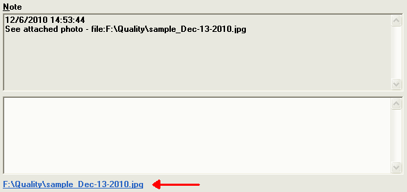 If the Note field on the Note and Corrective Action tab is divided into an upper (shaded) and lower box similar to the following example, you are limited to adding new notes to this record (without rights to change or delete saved notes).