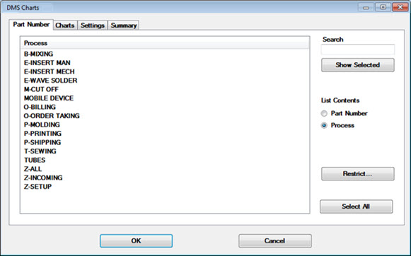 The DMS/OEE Charts dialog can be accessed from the GainSeeker Charts module.
