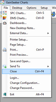 | Close all open charts or dashboards open on the GainSeeker Charts window except the one that is selected: |