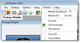If you plan to work with more than one chart or dashboard on the GainSeeker Charts window, you may want to familiarize yourself with some of these tips and functions. They can help keep the window organized and your charting and dashboard windows easy to identify.