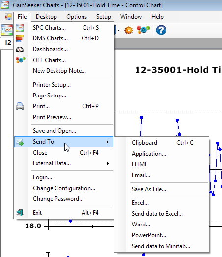 To open the Send To options using the GainSeeker Charts toolbar: