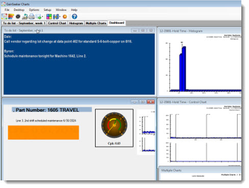 You can store the note on a desktop along with SPC charts, DMS charts, and dashboards that you choose as in the example below. You can also store just the note window itself as a desktop.