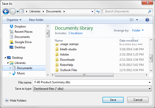Click Save to save the dashboard to the designated file.