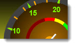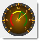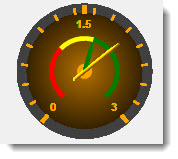 This is an example of how a Dial Gage dashboard control might look on a running dashboard, depending on the skin that is selected and the user-assigned properties: