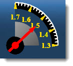 Using this value and the current data, GainSeeker uses three tick marks and two intervals of 1.5 for the gage: