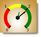 In this example, the AutoTick value has been set to True and the AutomaximumTicks property has been user-set to allow 12 or less tick marks. GainSeeker configures the best interval rate and the number of tick marks for the gage based on these property settings and the current retrieval range of 0–3 in this example.
