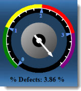 In this example, purple was selected as the ExtendColorUpper value color—a visual flag that the percent of defects has exceeded the maximum ending value on the gage—3.