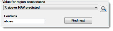 Value for region comparisons, Start value for color, and End value for color drop-down lists in the Define BackColor Regions dialog each feature advanced search option features.