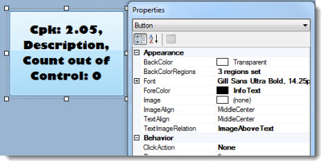 For this example of a Button control, the color red is assigned as an alert that a specified number of samples are out of control. See Editing the BackColorRegions property for more information