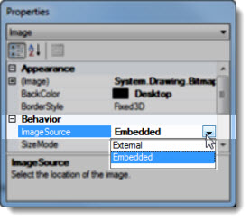 Click the ImageSource property value cell on the Properties dialog.