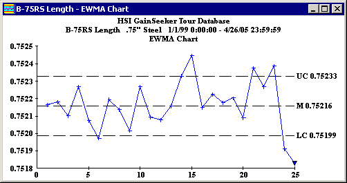 The EWMA (Exponentially Weighted Moving Average) chart uses a weight value to create a moving average.