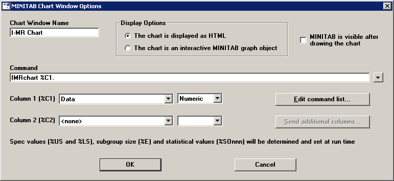 In the Display Options box, choose whether the chart should be displayed as HTML or as an interactive MINITAB object.