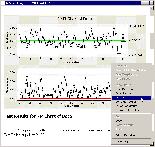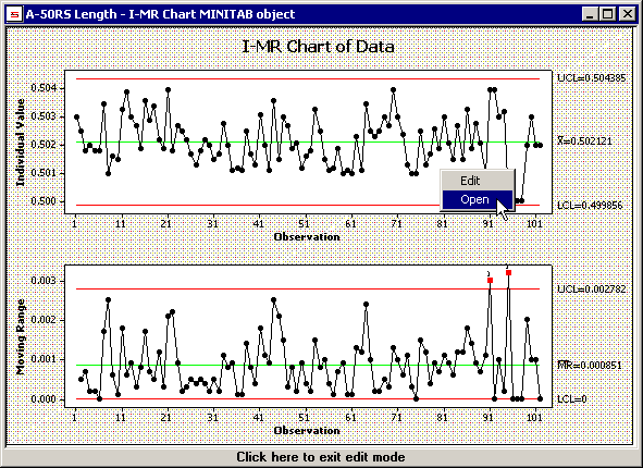 If you select to display the chart as an interactive MINITAB graph object, the resulting chart window can use right-click functions from MINITAB, as shown in the example below.