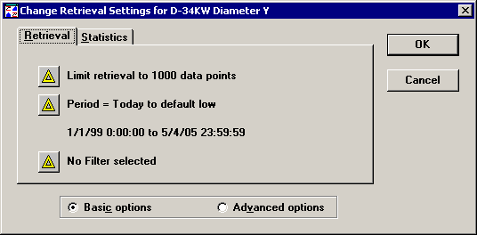 If you want to view the data on your desktop by a different date range, first click the Desktop menu, click Save As, and save a copy of your desktop with a different name. Then click the Options menu and click Change Retrieval Settings to change the date period. |