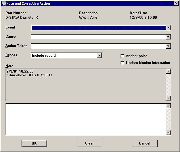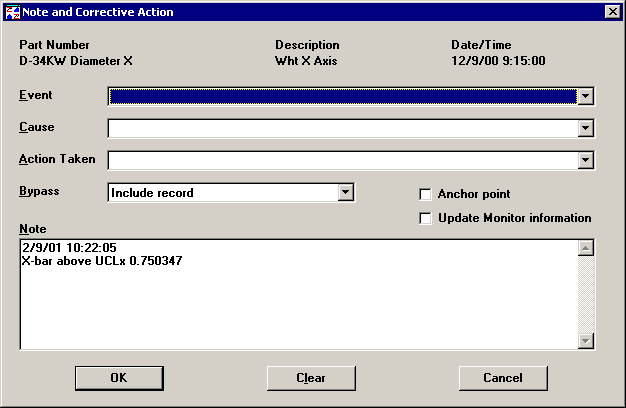 Enter or edit the note text as you want. You may also update the Event, Cause, Action Taken, Bypass, and Anchor point settings for this subgroup. Then click OK.