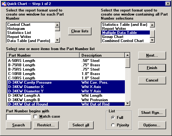 In Quick Chart or in the Chart Wizard, select the same standard multiple times and apply different retrieval or statistical options to each "instance" of the standard selection. This option is convenient if you want to analyze the same standard with different data counts, column retrieval options, or statistical settings.