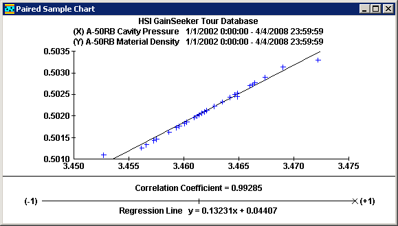 GainSeeker creates the Paired Sample chart by retrieving data for the two standards you specify and pairing the last data record from both retrievals, the next-to-last record from both retrievals, etc. Each of these data pairs is then plotted on the chart.