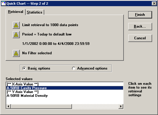 To set retrieval and statistical options, click Next. Otherwise, to generate the Paired Sample chart without changing retrieval or statistical options, click Finish.
