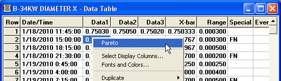 Right-click the data table and then click Pareto.