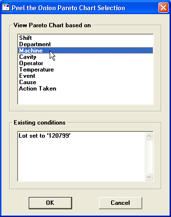 When prompted, choose the traceability or corrective action field to use for categorizing the data records from the Pareto bar you clicked