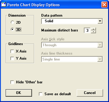 When a Pareto chart is displayed on your screen, you can set options such as whether bars are two-dimensional or three-dimensional and the maximum number of bars to display.