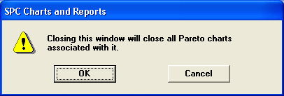 When you close a Data Table or a Pareto Chart, GainSeeker warns you that it will also close all Pareto Charts that were based on the window you are closing: