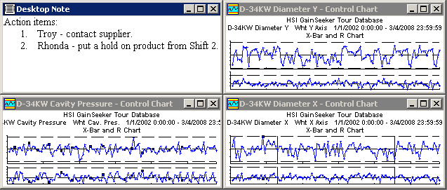 In addition to the dashboards, charts, reports, lists and/or tables on your screen, you can also create and edit a Note window that can be saved with the Desktop. This can be useful for collaborating with other colleagues or for keeping a "To Do" list for the data you save as a Desktop.