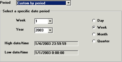 Use this option if you want to retrieve data for specific period rather than for specific dates. For example, you could ask the program to retrieve data for the last quarter or last five months. The program calculates what days and dates to include. This option is particularly useful if you operate on a fiscal calendar. (To use DMS with a fiscal calendar, the system manager must enable that setting during setup.)