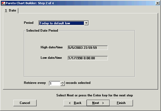 If you have a large number of records to retrieve and want to chart a representative sampling, one way to limit the number is to Retrieve every <3 or 4 or 8> records selected. Your results, of course, will not be as precise as using other filtering options.