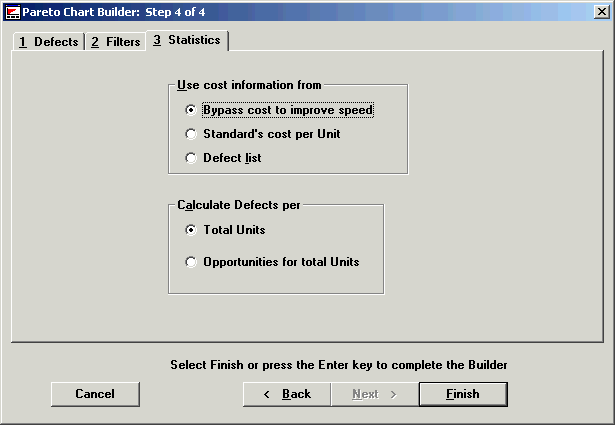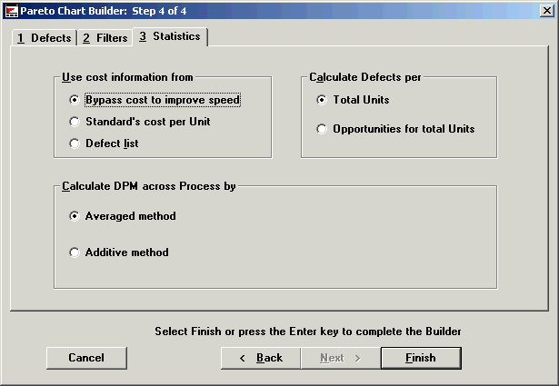 After you have made your selections from the Defects, Filters and Statistics tabs, click Finish to see your chart.