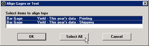 This method lets you align multiple items to the selected gage, text, or File or URL item: