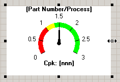 Click a Dial gage, a Bar gage, or a File or URL item so that the sizing handles are displayed.