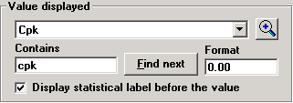 To display the statistic with its label (e.g., "Cpk: 1.93"), select the Display statistical label before the value check box.
