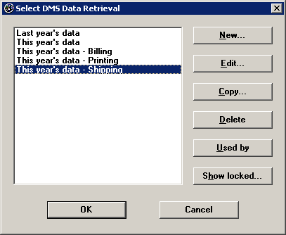 If you do not have the right to edit locked items, you will be prevented from editing, overwriting or deleting a locked retrieval. To see which retrievals are already locked, click the Show locked button. This will create a list of locked retrievals and display this list in your editor.