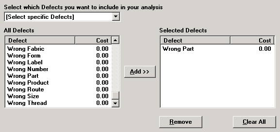 To select one or more defects for this dashboard, click the Select which Defects you want list and choose anything except "Include all Defects".