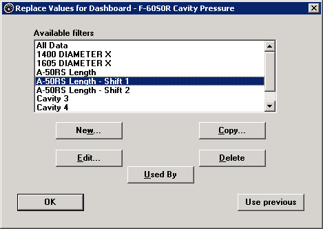 To use the values originally stored with the dashboard, click Use previous.