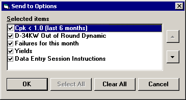 If two or more dashboard windows are displayed (and you are not sending to a file and choosing the .jpg file type), then you can choose exactly which components to send, such as those shown in the following example.