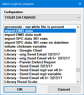 This will display the Select script to compare window and highlight the script you just selected: