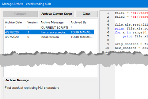 two script versions, and then click the Compare