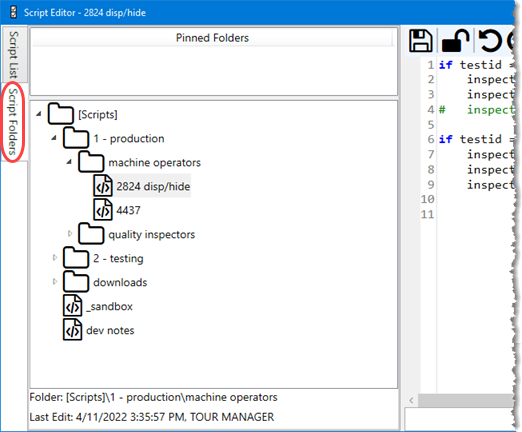 Folders tab to organize your scripts
