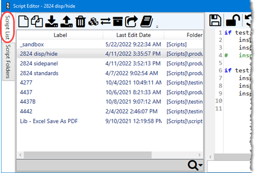 The Script List tab provides a toolbar for most functions and a search field below the list of scripts.