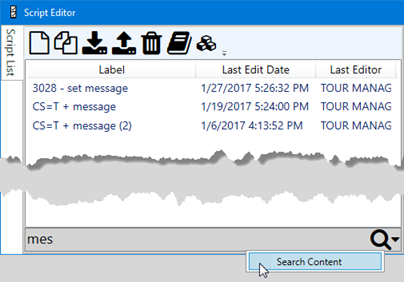 Content, and then type a portion of the script contents