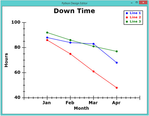 The Linechart and Barchart commands in Python™ allow you to draw a simple line chart or bar chart in a custom dashboard or in a Python script in PC Collect.