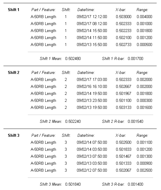 Here is an example of shifts 1, 2, and 3 using the same part number and same date range.