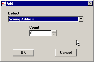 Choose the new type of Defect and enter the Count of this type of defect, and then click OK.