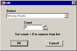 Then enter the correct Count and click OK. If you change the Count to 0, this item will be removed from the Defect list.