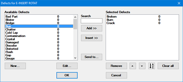 When you are finished, Click Defects... to open the Defects for ["process"] dialog. See Building a defect list below.