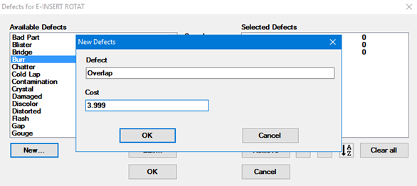 Enter a name for the defect in the Defect text field. You can also define a cost for that defect. See Implementing cost-tracking capability below.