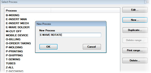 Highlight a process in the list that is similar to the new one you want to add, and then click the Duplicate... button. Change the name that displays in the Process text field of the New Process dialog to a unique name for the process.