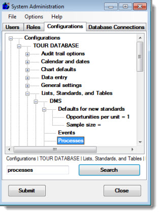 Configurations | (configuration name) | Lists, Standards, and Tables | DMS | Processes